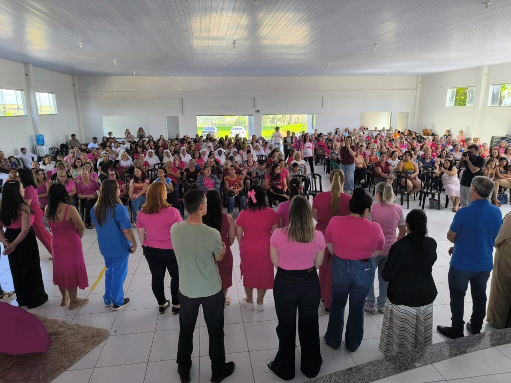 A Secretaria Municipal de Saúde de Espigão Alto do Iguaçu promoveu, na última sexta-feira (31), o evento de encerramento da campanha “Outubro Rosa 2025”, reunindo mais de 350 mulheres no Centro de Eventos do município. A tarde especial contou com uma palestra-show, momentos de descontração e a entrega de sombrinhas cor-de-rosa às participantes, em alusão à campanha de conscientização e prevenção ao câncer.
